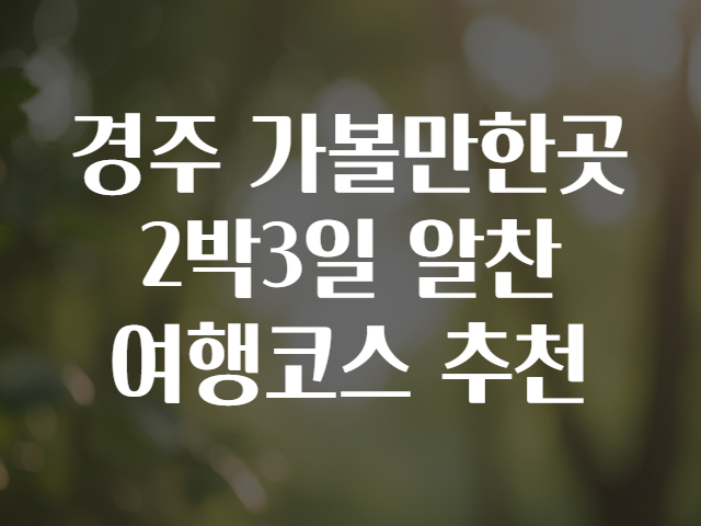 🗿 경주 2박 3일 알짜 관광 코스 추천
