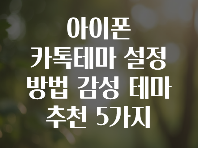 안녕하세요! 오늘은 아이폰 사용자라면 누구나 한 번쯤 고민하는, 바로 카카오톡(카톡) 테마 설정 방법과 추천 감성 테마 5가지를 친절하게 알려드릴게요. 🤗 언제나 똑같은 기본 테마에서 벗어나 나만의 특별한 톡방 분위기를 만들고 싶은 분들, 감성적인 디자인에 빠져있는 분들 모두 환영합니다! 🎉