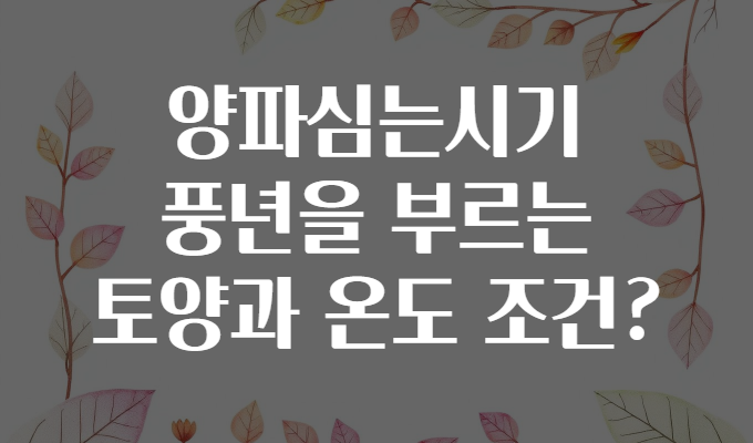 여러분, 밭에 양파를 심으려는데 ‘정확한 시기’와 ‘토양 및 온도 조건’ 때문에 고민해 보신 적 있나요? 🤔 매년 풍성한 수확을 꿈꾸지만 막상 시작하기 전 정확한 환경 이해가 없으면 실패하기 쉽죠. 이번 글에서는 양파 심는 시기와 함께 좋은 토양과 온도 조건에 대해 알기 쉽게 정리해 드리겠습니다. 풍년의 비밀, 지금부터 낱낱이 파헤쳐 볼게요! 🌾🌞