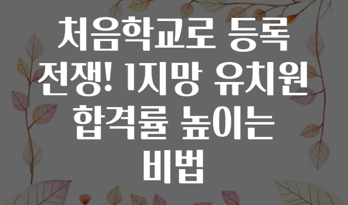 오늘은 처음학교로 등록 전쟁⚔️에서 1지망 유치원 합격률을 확실히 높이는 방법을 상세히 알려드릴게요!📈 부모님들의 마음을 너무 잘 알기에, 현명한 신청 전략과 실전 꿀팁을 모두 담았습니다.